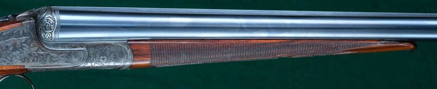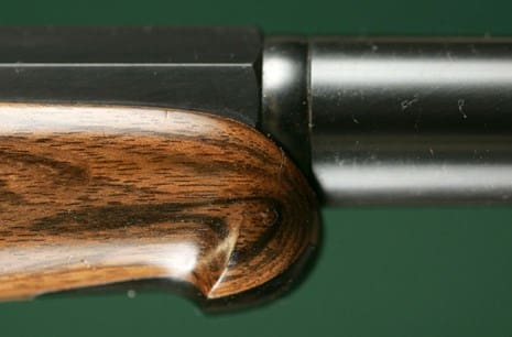 Beavertail forearms are very large and stout. They resemble a beaver’s tail because they are wide and thick, and flat on the bottom. The sides of the forearm partially wrap around the barrels that extend to over half the diameter of each one. This type of forearm also protects the shooter’s fingers and hand from getting burned from the hot barrels while shooting.